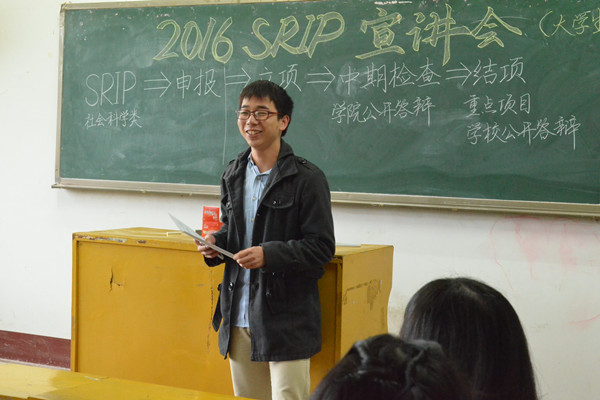 科技部于十教308召开宣讲会,2015年SRIP立项同学蔡泽涛到场分享经验,360看球吧