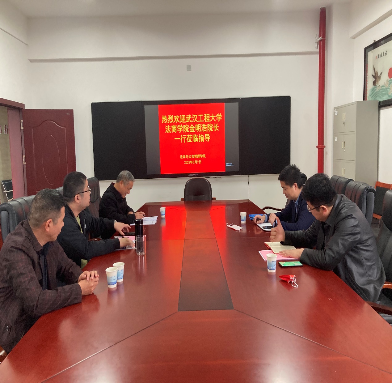 院史陈列墙,资料展示墙,并就新时代法学专业的发展进行了深入交流。