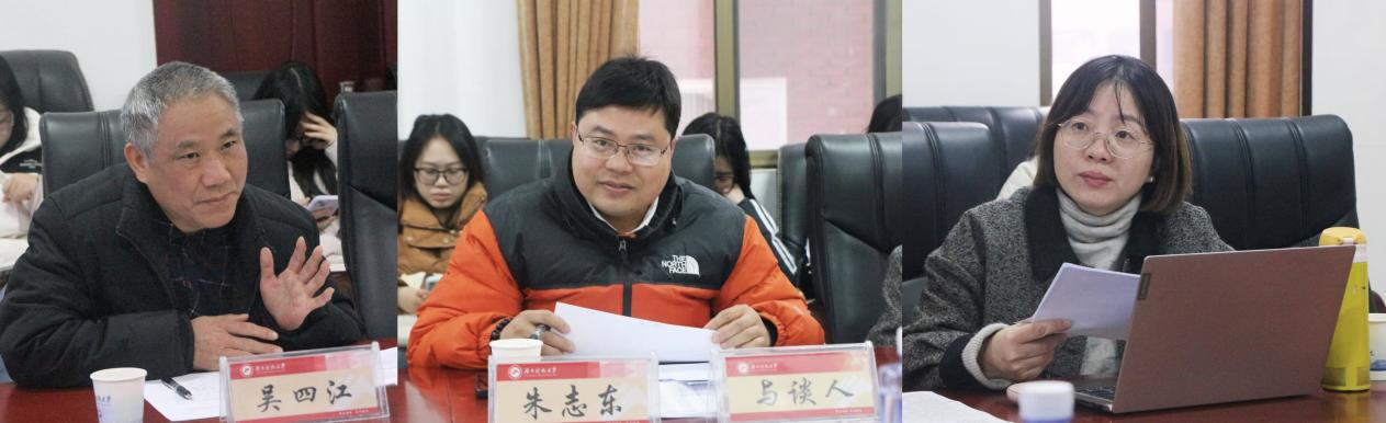 胡正昌教授主持,汪叶、赵筱芳两位青年博士围绕各自的国家社科基金申请书内容做了主题发言,吴四江副教授、朱志东讲师担任与谈人,副院长宋智敏教授、谢潇博士以及24级法律硕士研究生参加了本次活动。