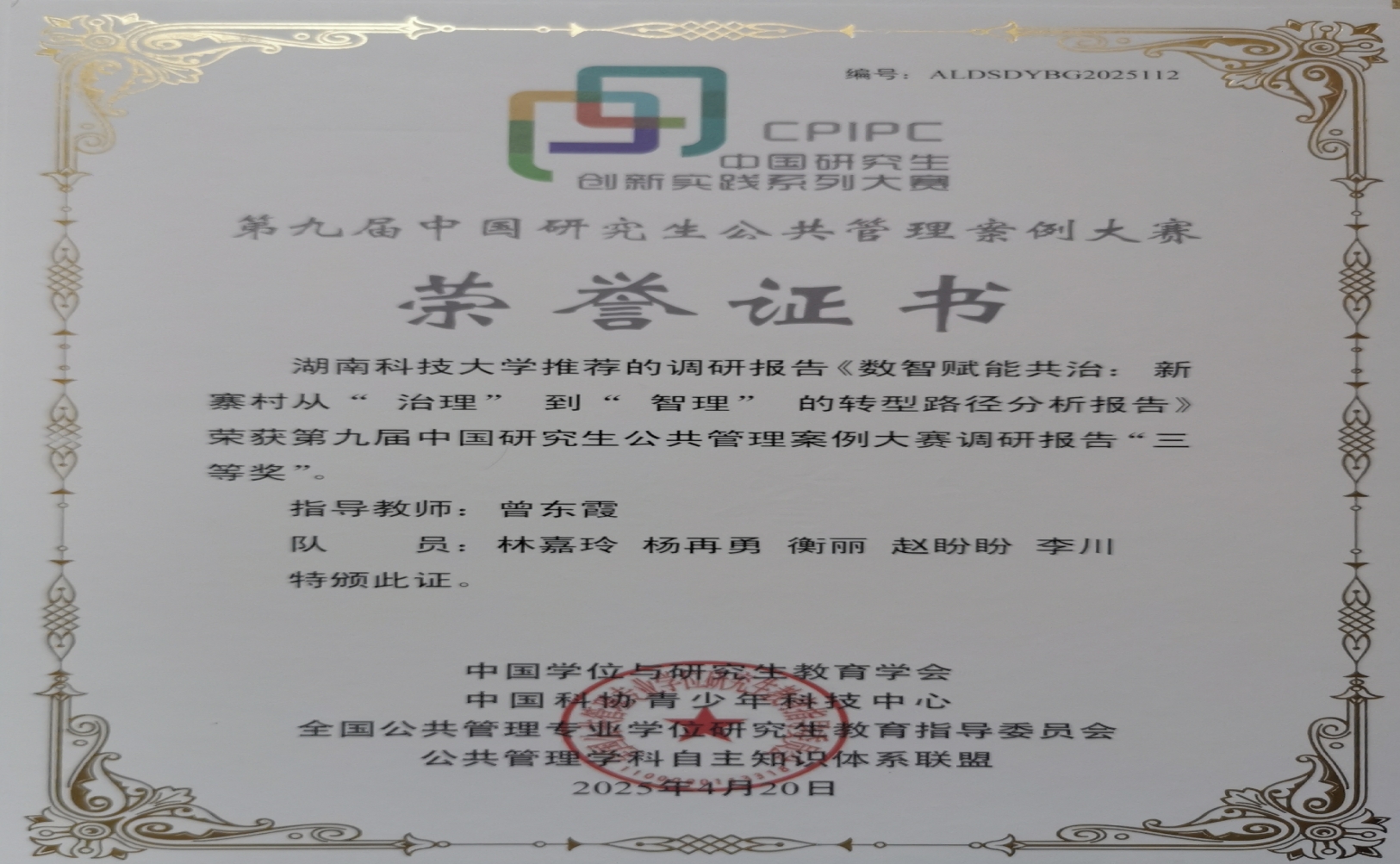 “数智乡村团”提交的调研报告在第九届中国研究生公共管理案例大赛中喜获三等奖