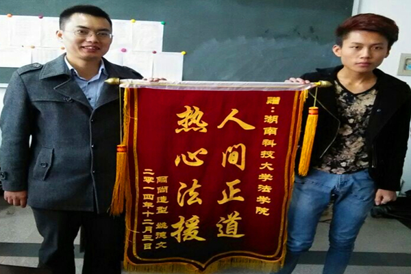 法学系系主任刘敏老师在五教与他们会面并接受了他们赠予的锦旗。 来校的三位同志表示,在过去的一周内,潇湘360吧