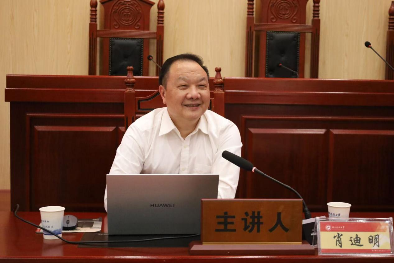 2025年4月2日下午,湖南省人大法制委主任委员肖迪明应邀在立言楼模拟法庭作《高质量立法服务高质量发展——湖南地方立法实践与思考》专题讲座,湘潭市人大法制委主任委员罗伟进行与谈。讲座由校党委副书记谢慧主持。360吧