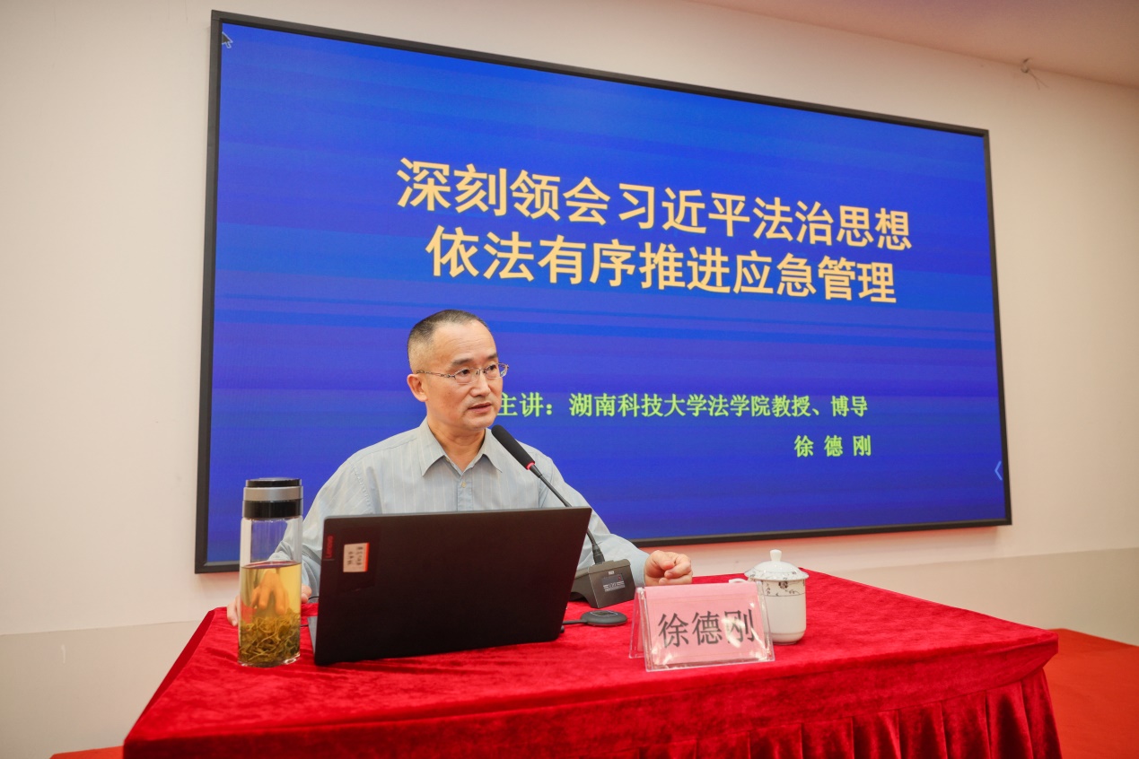 徐教授紧紧围绕《深刻领会习近平法治思想,依法有序推进应急管理》这一主题展开授课,重点讲解了习近平法治思想的形成背景、习近平法治思想的主要内容及其实践,讲述了习近平关于依法推进应急管理的重要论述,并就应急管理部门贯彻落实习近平法治思想及习近平应急管理重要论述提出了建议。整场授课深入阐释了理论,并紧密联系了实际,授课深入浅出,气氛活跃,受到培训班学员的一致好评。
