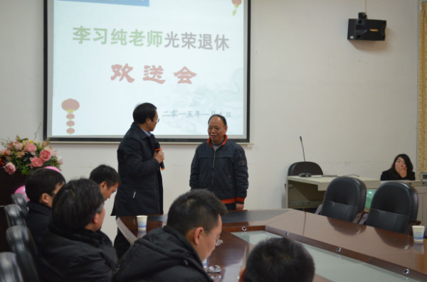 | 一支粉笔,三尺讲台,他在科大耕耘四十余载;岁月染芳华,步入退休之年,他收获了满园桃李。1月9日下午4点,“李习纯老师光荣退休欢送会”于十教606顺利召开。院党委书记黄伟,院长廖加林,副院长胡正昌、喻军、陆自荣等老师和学生代表出席了此次会议。会议由政治系主任毛小平主持。 师生情 会议伊始,思政专业同学拍摄的祝福视频表达了对李老师的衷心祝愿之心、真诚感谢之情。学生代表李军师以一句“他不只是老师,更是我们的爷爷。”让大家了解了李老师和蔼可亲的一面。“不管是平时教学,还是教育实习带队期间,李老师总是不断激励我们成长”。一首《感恩的心》,让全场师生齐声吟唱。 李老师的师德风貌深深地刻在学生心里,感染并影响着他们。学生们献上鲜花并颁发“最佳魅力老师奖”给可亲可敬的李老师。 同事情 “ 爱岗敬业、默默耕耘、不图名利、不记得失,于平凡之处见伟大,于细微之中显精神 ” ,廖院长对李老师的高度评价,也祝福李老师今后生活健康、幸福。教师代表谭良春则从 “ 好老师、好领导、好兄弟 ” 三个方面表达了与李老师的深厚情谊。 为表达全体老师的敬意,教师代表凌应生博士向李老师献花,黄书记代表360吧