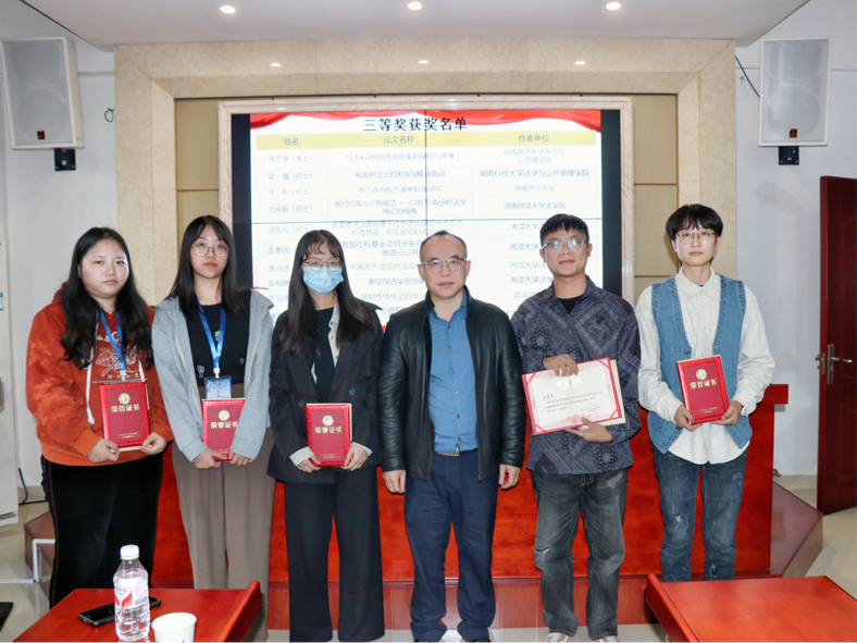 增选了湖南省法学会宪法学研究会副会长和副秘书长,并为十位获奖同学颁奖。