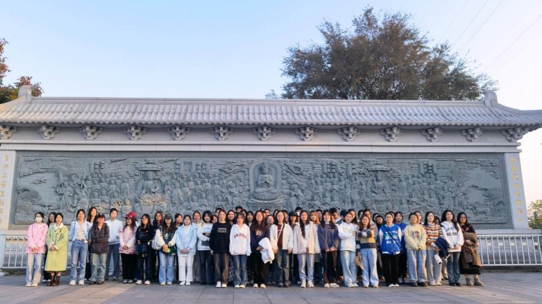 ▲学生在窑湾街道历史文化街区合影