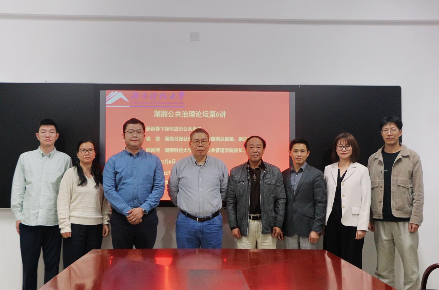 聘任仪式结束后,徐荣副总编辑现场开展了题为“新形势下如何应对公共危机”专题讲座。他讲解了众多鲜活的危机案例,并分享了自己在公共危机处理过程中的心得体会与经验,指出公共危机处理能力对于培养公共管理人才方面的重要性,强调作为公共管理人员,在面对公共危机事件时,要正确引导、积极介入,准确找出问题的根源、及时处理,切勿瞒报谎报实情等。