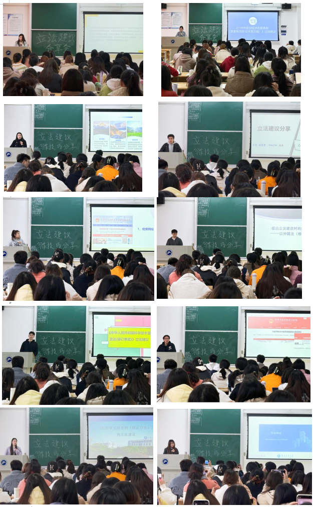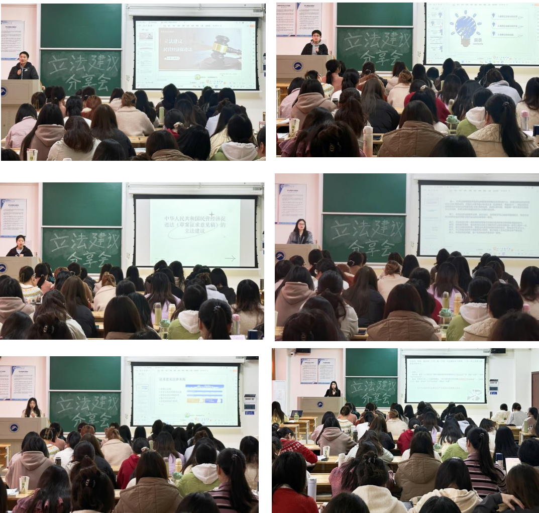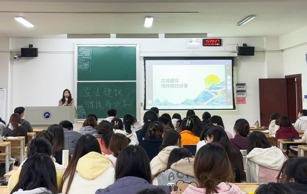 组织了两场立法建议分享会。分享会由立法法任课教师赵筱芳指导,16名研究生进行分享,22级法学1-6班全体本科生参与学习。