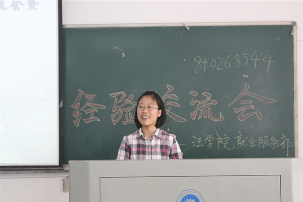 首次有同学被该校录取。她认为,考研首要的是要坚定目标,并取得家人的支持,但同时也要做好失败的打算,要有一种不破楼兰终不还的精神。“在考研时,我最大的收获就是了解了自己、摸透了自己”,录取于中国政法大学的陈俊林这样说到。他说自己并不属于那种学霸型的学生,因此他花费了很多时间去了解自己在哪个时间段的学习效率最高、什么学习方法最适合自己等。为了更好投入研究生考试中去,他还果断的放弃了司法考试。 以432的高分通过司法考试的杨培育,考研成绩同样出色,成功被武汉大学录取。“曾经自己什么考试都喜欢一个人奋斗,但在考研过程中,我发现合作真的很重要”,杨培育这样感慨道。因为和研友一起备考,相互督促,共同分享学习资料,往往能够达到事半功倍的效果。而考上海事大学的刘嘉雯认为最重要的就是要选择自己喜欢的专业,充分激发自己的主观能动性。 会议最后,廖院长作总结性发言,首先他感谢四位同学的经验分享并肯定了法学专业同学在研究生考试中为360吧