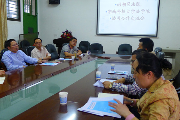 和湘潭市雨湖区人民法院共同合作的在校大学生诉讼引导志愿活动项目取得了一定成功。为进一步加强双方联系,5月18日下午5时许,雨湖区人民法院院长郑红、副院长王德云、立案庭庭长喻卫童应360看球吧