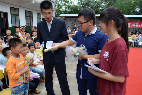 青年志愿团承办。 杉山小学校长段勇致开幕词。他带领台下的小朋友一同宣读“学习宪法知识,增强法制观念,争做守法公民”活动口号,并教导他们懂得社会的规则分为“法律”和“道德”。“子不教,父之过,为了青少年的健康成长,有效预防青少年犯罪,我国专门制定了《预防未成年人犯罪法》来保障青少年的权利”,伴随主持人的抛砖引玉,关于《预防未成年人犯罪法》、《未成年人保护法》、《中华人民共和国义务教育法》的微讲堂依次开展。其间,志愿团独具特色的小品歌剧演出,更是生动形象地诠释了艰涩难懂的法律条文。小品《爸爸爸爸爸爸》中小学生智斗人贩子的故事,以简单的情节和幽默的对白,结合主讲人通俗易懂的法律授课,让在场的小朋友于欢声笑语之间懂得了诸多防范陌生人,寻求法律援助,保护自身安全的小常识。 此外,活动中还穿插了有奖竞答、学生才艺展示等丰富多彩的互动环节。融入法律小常识的娱乐游戏,让小朋友们在轻松愉快的气氛中潜移默化地接受法治文明的熏陶。相信这次普法微讲堂活动将会是参与人员们法律知识启蒙道路上铭记于心的一课。 (责任编辑:admin) |
