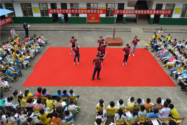 | 9月23日上午8点许,以“关爱明天,法治先行”为主题的青少年法制宣传周普法“微讲堂”系列活动在湘潭市杉山小学顺利举办。此次活动由湘潭市社会事业局、市经开区法制办、团工委以及湖南科技大学法360吧