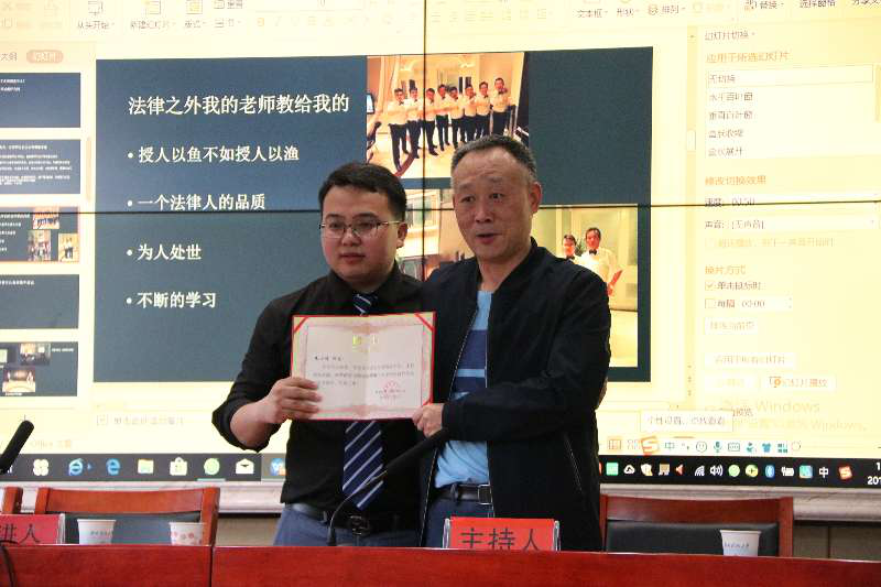 为朱律师颁发了法律硕士专业学位研究生实践指导教师的聘书。
