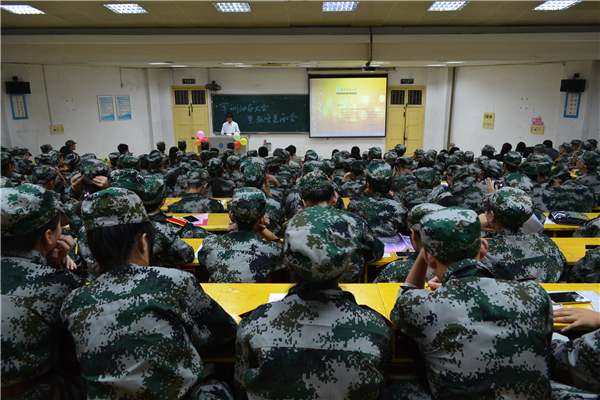 党委副书记叶军、辅导员伍安老师、军训教官以及团委学生会主席团成员、15级新生助班到场参加。 “军训的目的是什么?是锻炼你们的身体,是磨练你们的意志。”动员大会上,辅导员伍安老师说道。他希望新生能在军训期间发挥湖南人的精神,“吃得苦、耐得烦、霸得蛮”,用行动为军训划上圆满句号。本次军训的4位教官也随后上台进行自我介绍,要求新生认真对待军训,重视军训,一切行动听指挥。 “行李箱要统一摆放到柜子上方”、“肩章要齐”、“指甲不能留白”,宿管部、学习部的相关干部亲自上台示范,为新生们详细讲解内务卫生检查的具体要求以及关于军容军纪检查的具体细节。 向鹏荻同学代表全体2015级同学们做出承诺,将以军人的身份严格要求自己,出色完成军训。 “军训,就是培养同学们的品质——顽强、拼搏。”叶书记总结道,并且他希望2015级全体同学在今后的学习生活中也能顽强拼搏,严格要求自己,以一个崭新的面貌去迎接未来! (责任编辑:admin) |