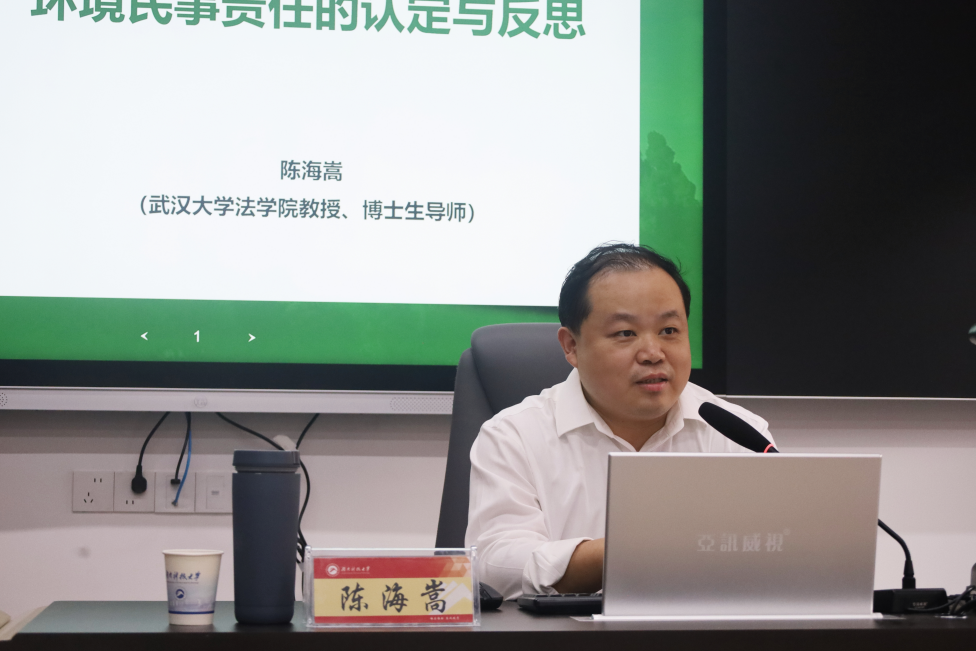 教授、博士生导师,国家社科基金重大招标项目首席专家陈海嵩应邀在立言楼A303作“环境民事责任的认定与反思”的主题讲座。本次讲座由我校法律服务中心主任马驰升副教授主持,蒋兰香教授和朱志东博士担任与谈人,近八十名师生参与了本次讲座。