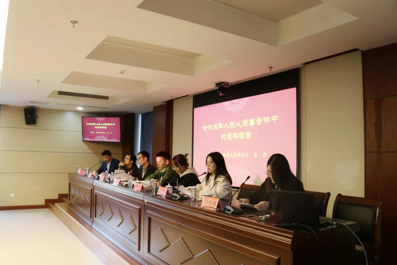 的研究生闫明燕同学,报告的题目是《合同借贷领域典型案例研究》,闫明燕同学从3个典型的借贷案件入手,对案件涉及的“后让与担保”的问题进行了性质界定和理论研究。第二位报告人是来自湘潭大学的研究生聂丹同学,报告的题目是《论未成年人致人损害案件中的适格被告》,聂丹同学从未成年人的责任能力、监护人责任适用原则和监护人责任的性质等方面对《民法典》第1188条进行法理分析。第三位报告人是来自中南林业科技大学的研究生张漾北同学,报告的题目是《催收非法债务行为的刑法规制》,张漾北同学通过对26个催收非法债务行为相关的案例样本进行分析,提出研究此类案件需要对罪与非罪、此罪与非罪进行甄别。第四位报告人是来自长沙理工大学的研究生罗官正同学,报告的题目是《挂靠情形下施工企业工程款支付风险及其法律保障》,罗官正同学通过对最高院判例观点进行整理,认为发包人直接向挂靠人支付工程款时,被挂靠人可以直接向发包人起诉请求其支付工程款。随后湖南师范大学法360吧