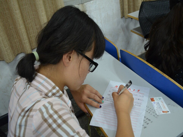 宣传部部长王亚兵等嘉宾到场进行指导。 晚上7点整,比赛在震撼的开场视频中拉开序幕。首先进行的是短作文写作比赛。一段视频引出了本次短文写作的主题,小小参赛者们开始提笔思索,顿时浓郁的写作气氛充斥着整个赛场...... 紧接着,由主持人向大家展示了本次长作文写作的备选题目。《给五年前的我》、《盲》、以“秋天责备”和“诗·史”为主题作文。这些作文题目看似新颖,其实是想让参赛者能够取材于生活,用慧眼来发现平凡中的美,引导大家捕捉生活中的精彩。“我们从来无法预知未来,也无力改变历史,如今的欢笑苦痛都是既定的,若知今日,还愿意好好地对曾经的自己说些什么。提起笔,轻叙慢述,给自己一个完美的交代.......”正如《给五年前的我》这一作文题所要求的这样,能够在文字中去认清现在的自我,或许在未来的航路里,我们才不会迷失方向。 时间在沙沙的写字声中悄悄流逝,赛场上法院骄子、物电精英肆意挥洒,激扬文字,任墨香飘散于教室之中。他们时而托腮凝思,时而奋笔疾书,用生花妙笔尽情书写人生,来抒发自己的真情实感. 数风流人物,还看今朝。写作小能手即将在他们中间诞生。2014级法360吧