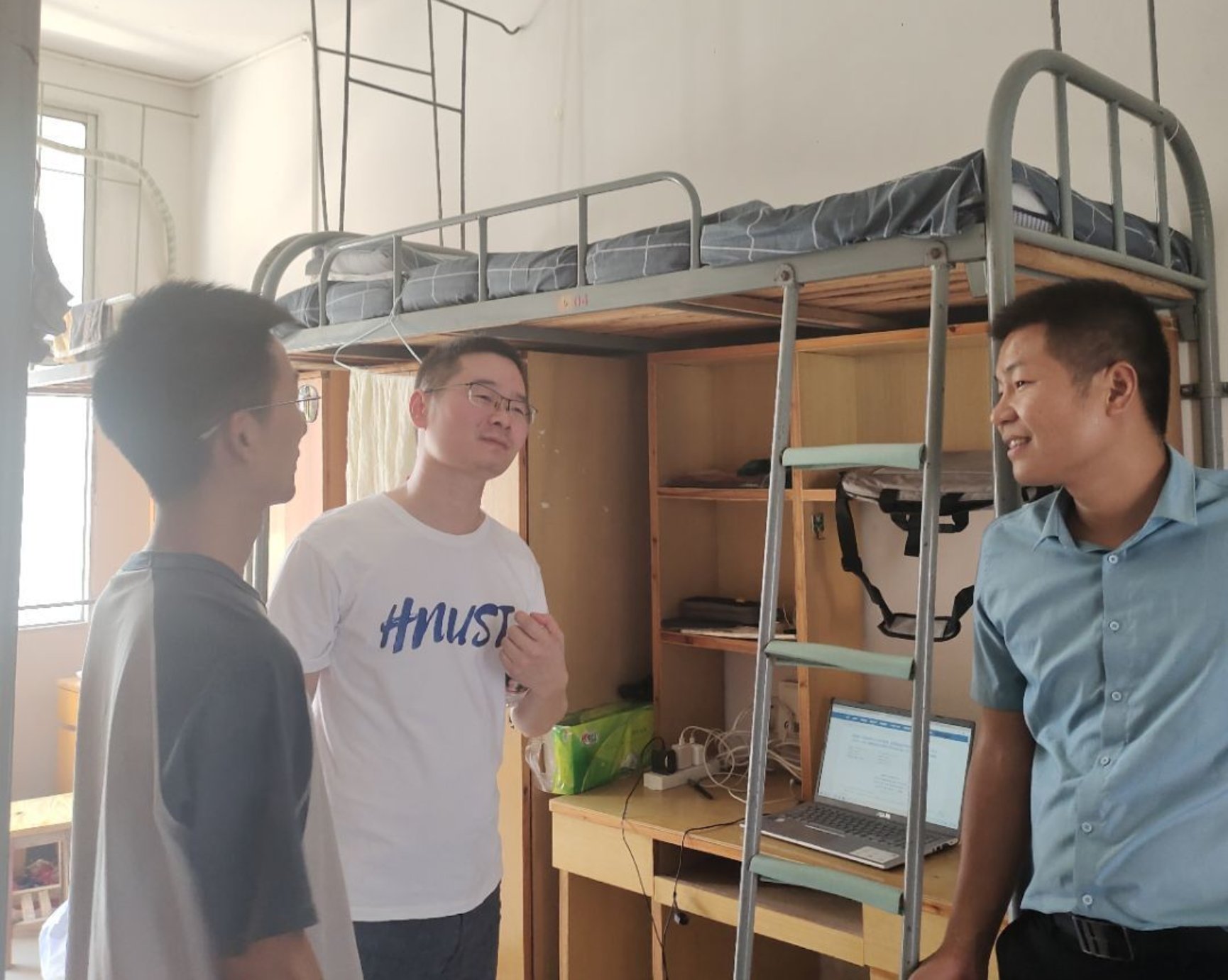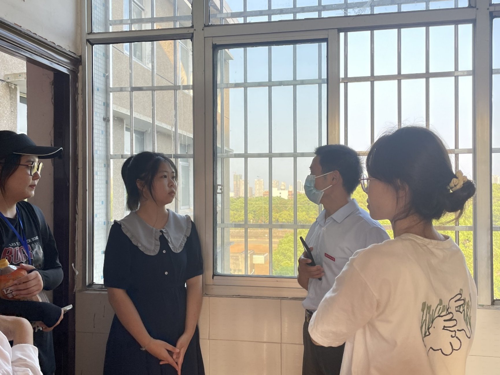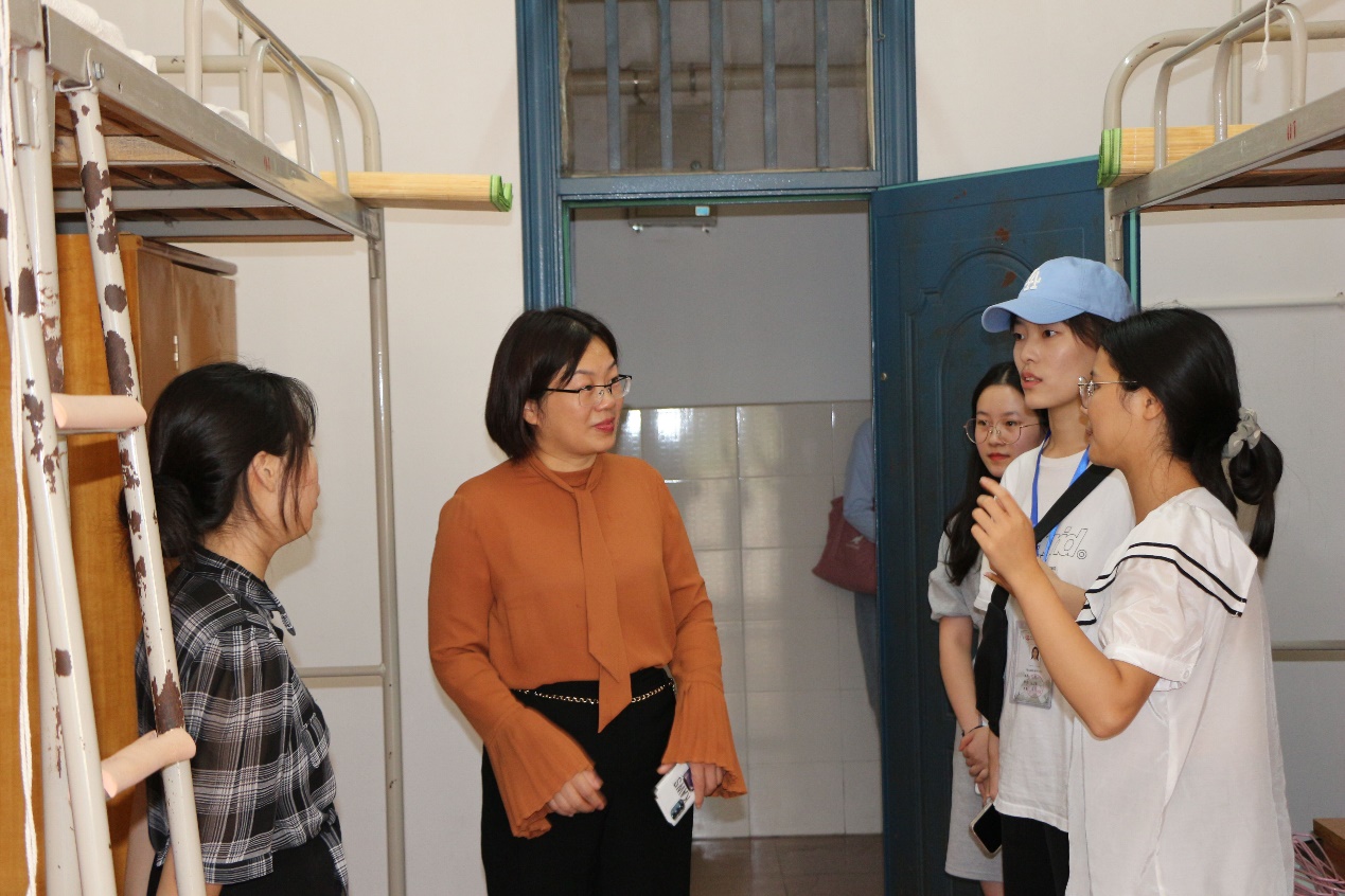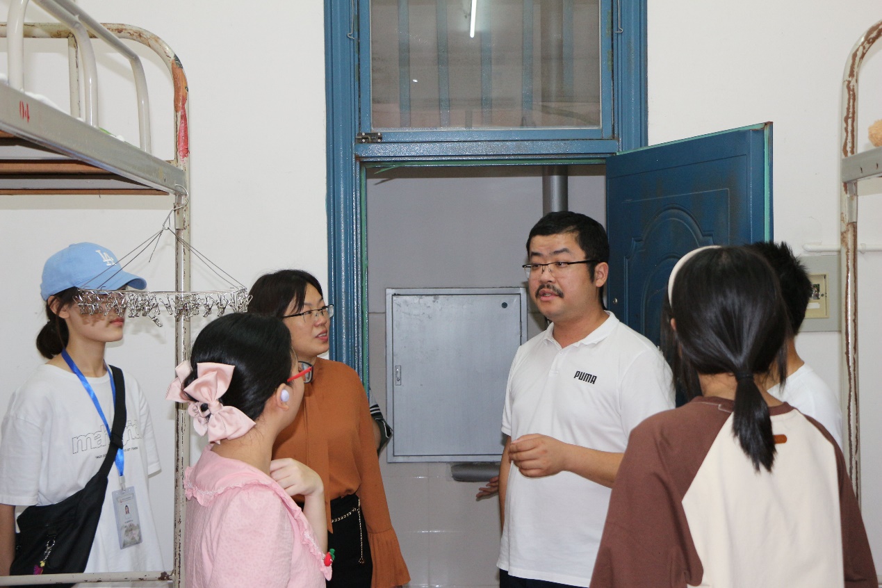 党委书记邱帅萍,党委副书记叶军,副院长宋智敏、王明,学校法律服务中心主任马驰升,学工办郭志军、李斌老师以及主席团成员下寝看望慰问2022级研究生和本科生新生。