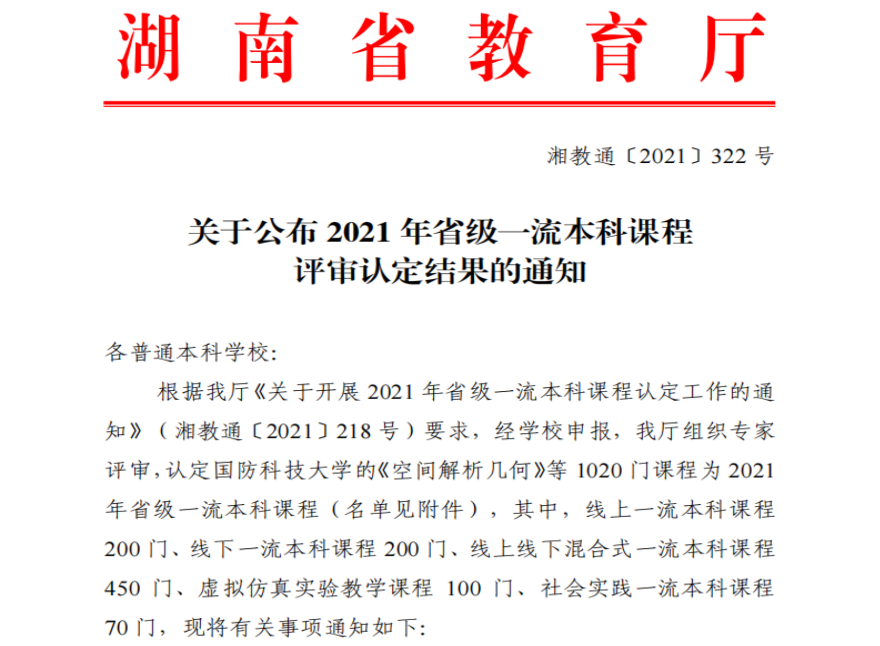2021年11月24日,省教育厅《关于公布2021年省级一流本科课程评审认定结果的通知》正式印发,360看球吧